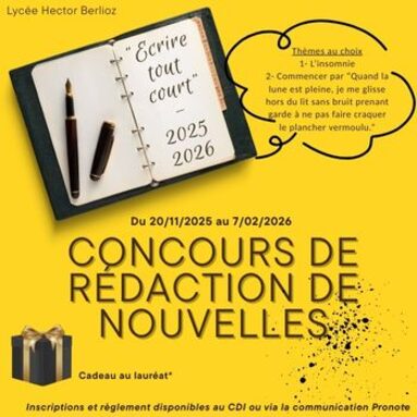 Par PAULINE NIARFEIX, publié le vendredi 21 novembre 2025 10:07 - Mis à jour le vendredi 21 novembre 2025 10:07Le concours de nouvelles d'Hector Berlioz est de retour !! -